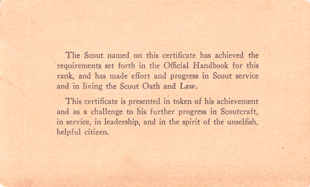 Item Name: Eagle Scout Certificate Card 1939 - 1940