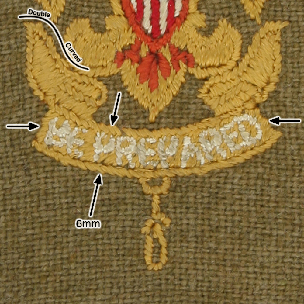 - Tan Lightweight Cloth with Cotton Lockstitch Embroidery and Plain Back 1939 - 42