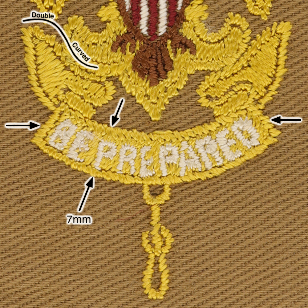 - Tan Lightweight Cloth with Cotton Lockstitch Embroidery and Plain Back 1939 - 42
