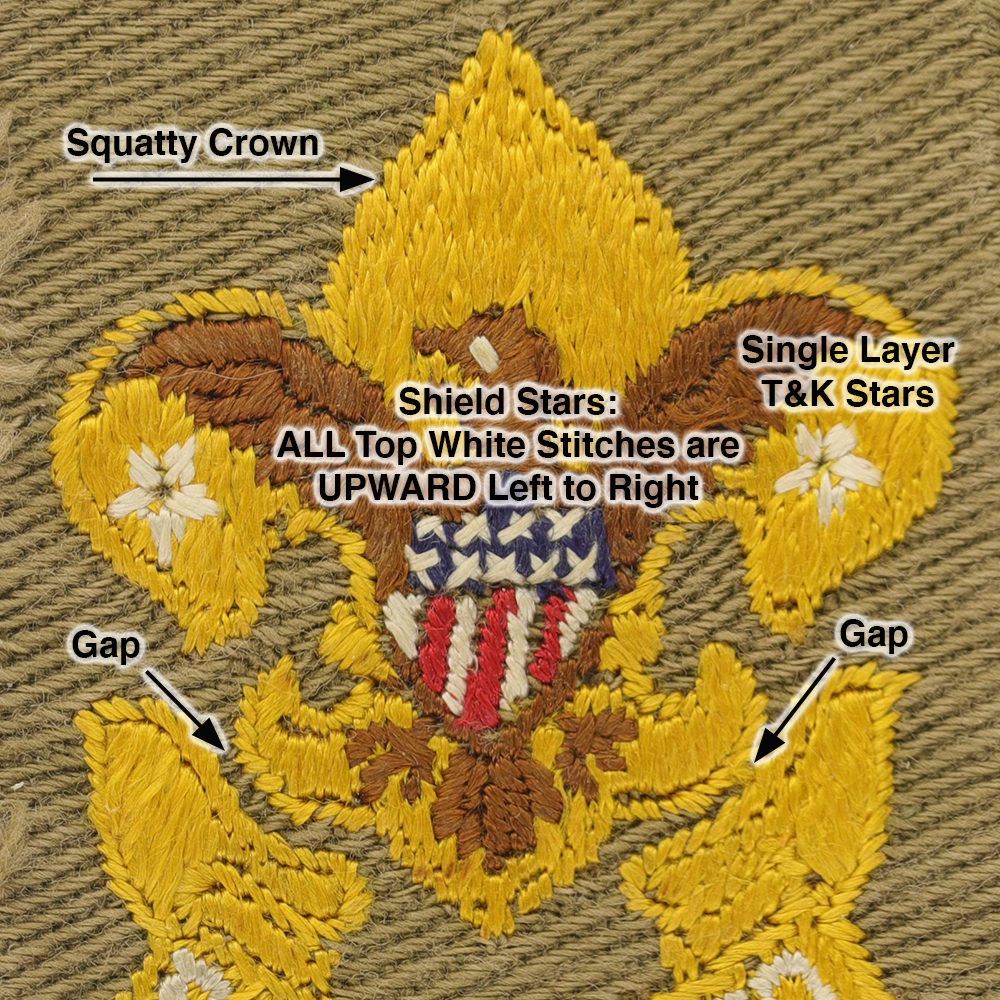 - Shield: All shield stars top white stitches are UPWARD left to right, 3 red stripes