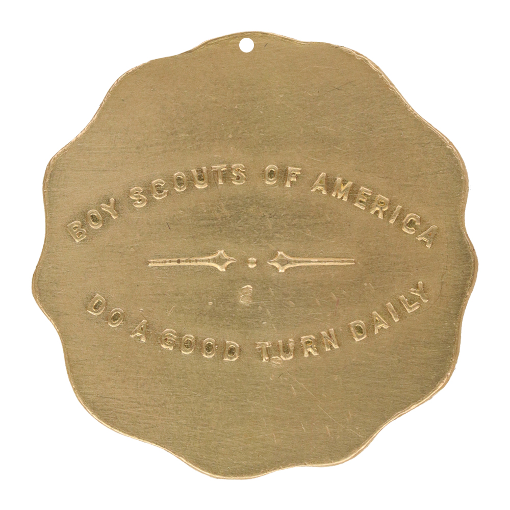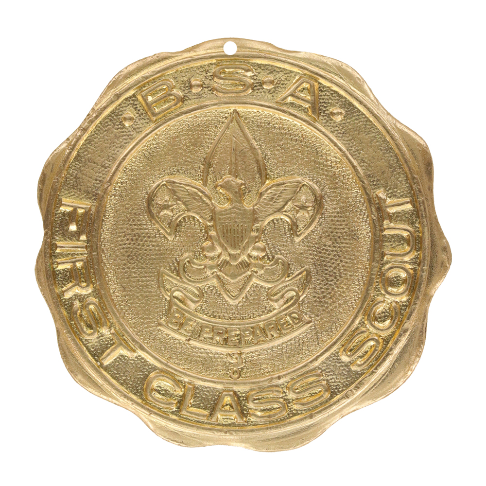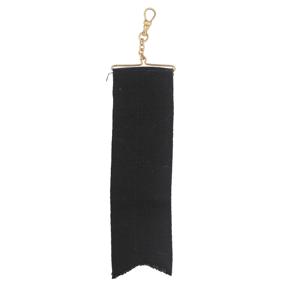 - Heavy grosgrain silk ribbon, First Class emblem, polished gilded medal fob, gold chain and clasp