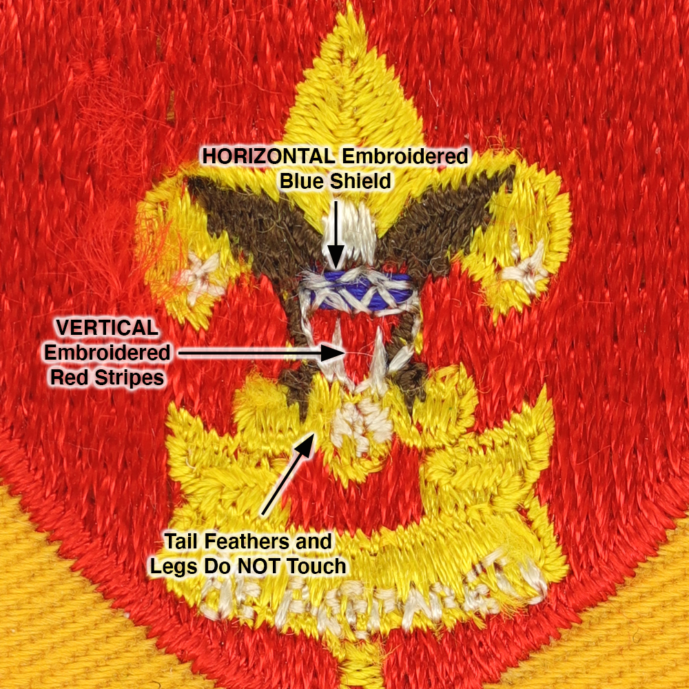 - Shield: HORIZONTAL blue, VERTICAL red embroidery