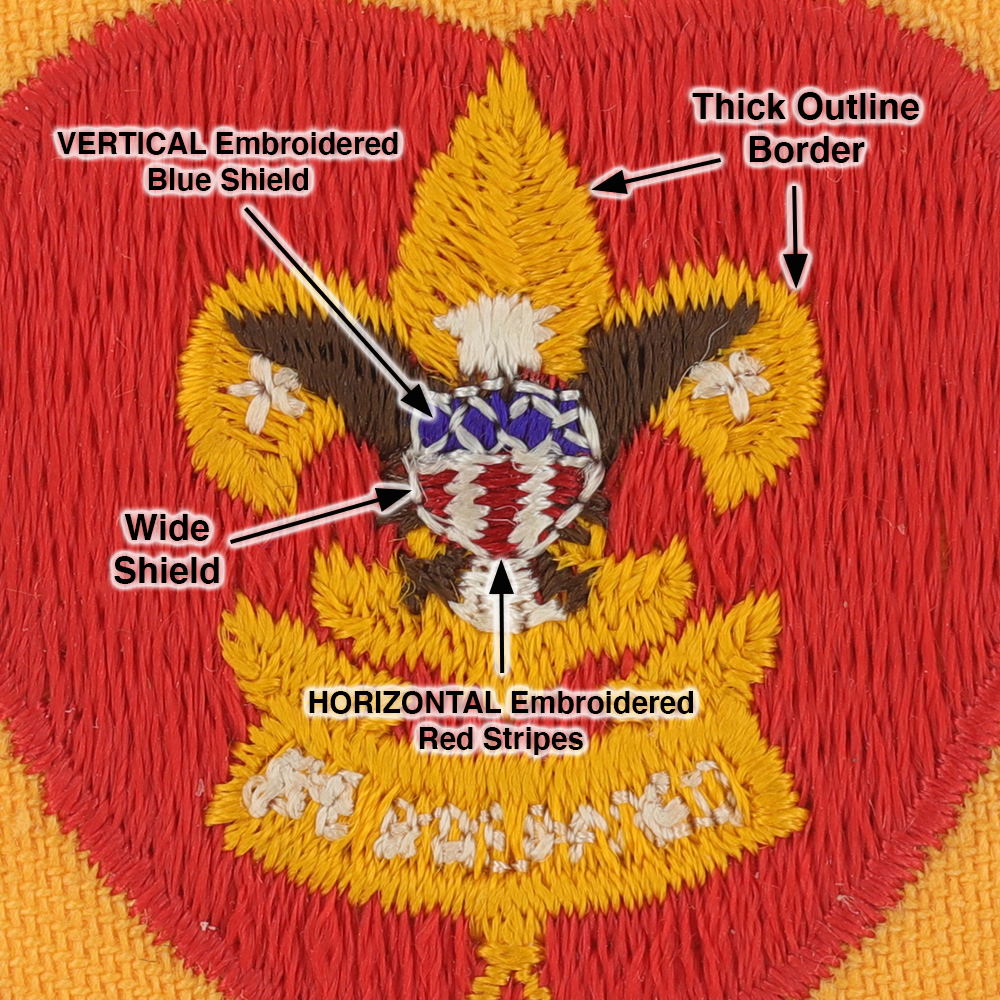 - Emblem: Thick embroidered outline to Tenderfoot an Smile