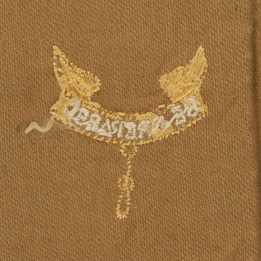 - Tan Lightweight Cloth with Cotton Lockstitch Embroidery and Plain Back 1939 - 42