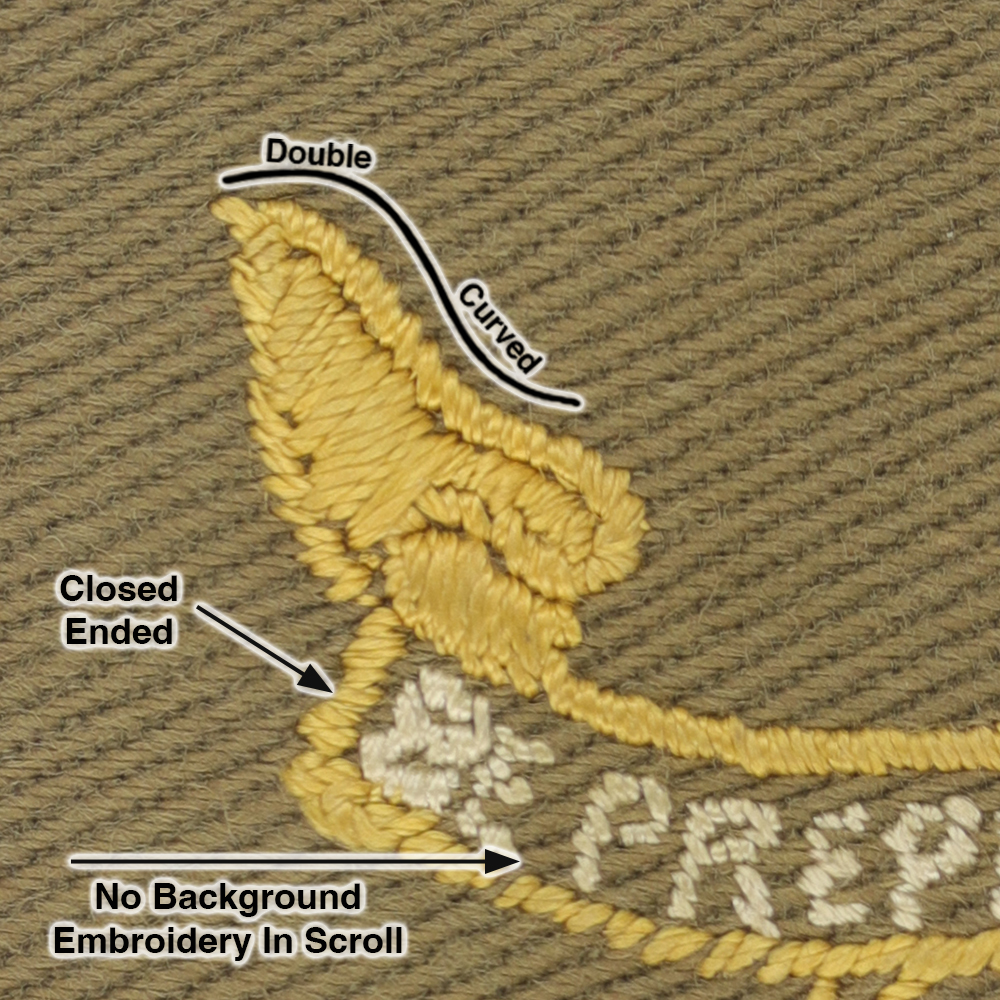 - Scroll Left: Double curved scroll top, closed ended smile, No background embroidery in scroll