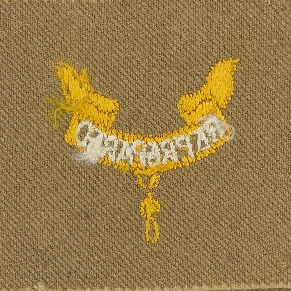 - Tan Lightweight Cloth with Cotton Lockstitch Embroidery and Plain Back 1939 - 42