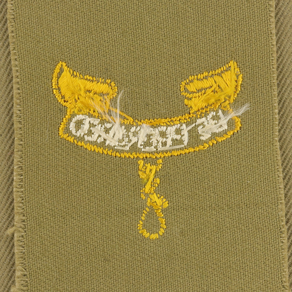 - Tan Lightweight Cloth with Cotton Lockstitch Embroidery and Plain Back 1939 - 42