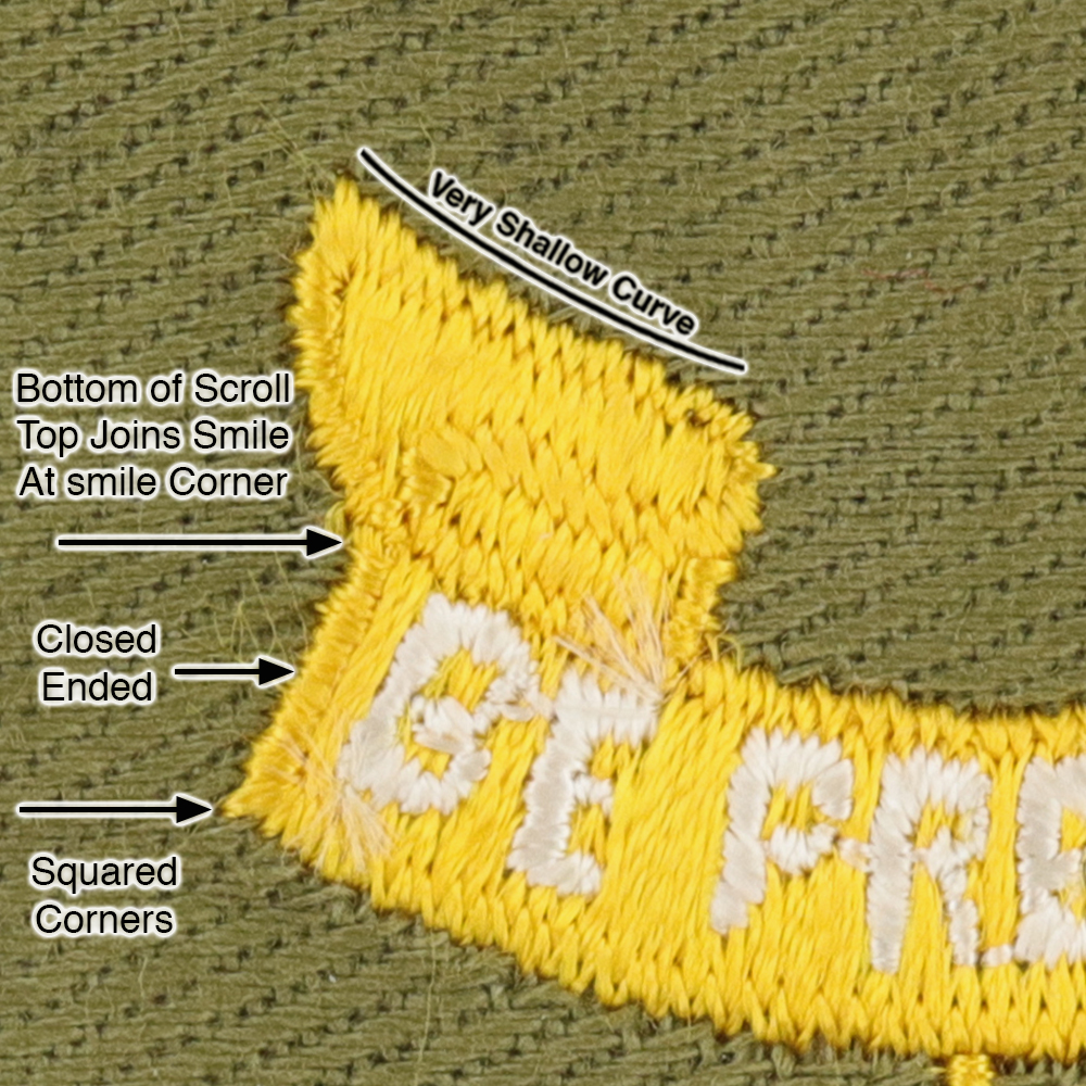 - Scroll Right: Very shallow concave curve scroll top, bottom of scroll top joins smile at smile corner, closed ended smile, lower corner of scroll squared