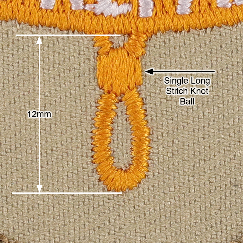 - Knot: 12mm rounded tip, single long stitch knot ball