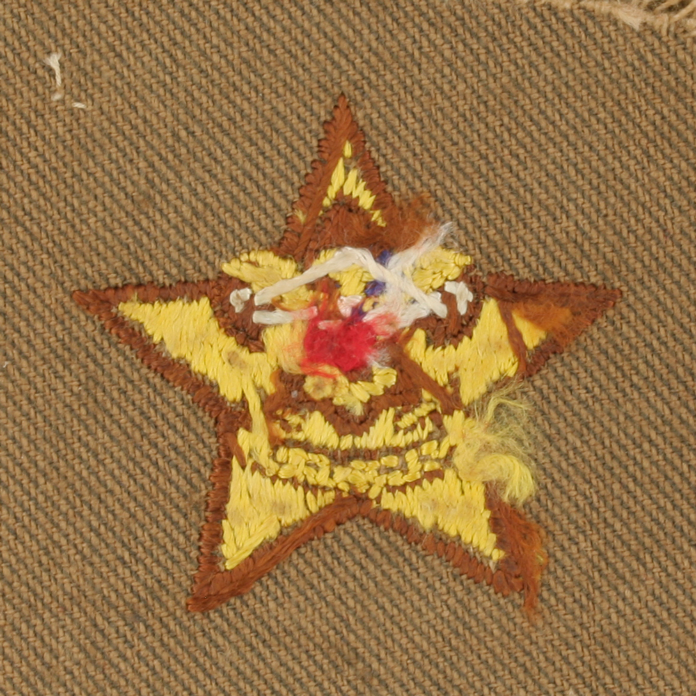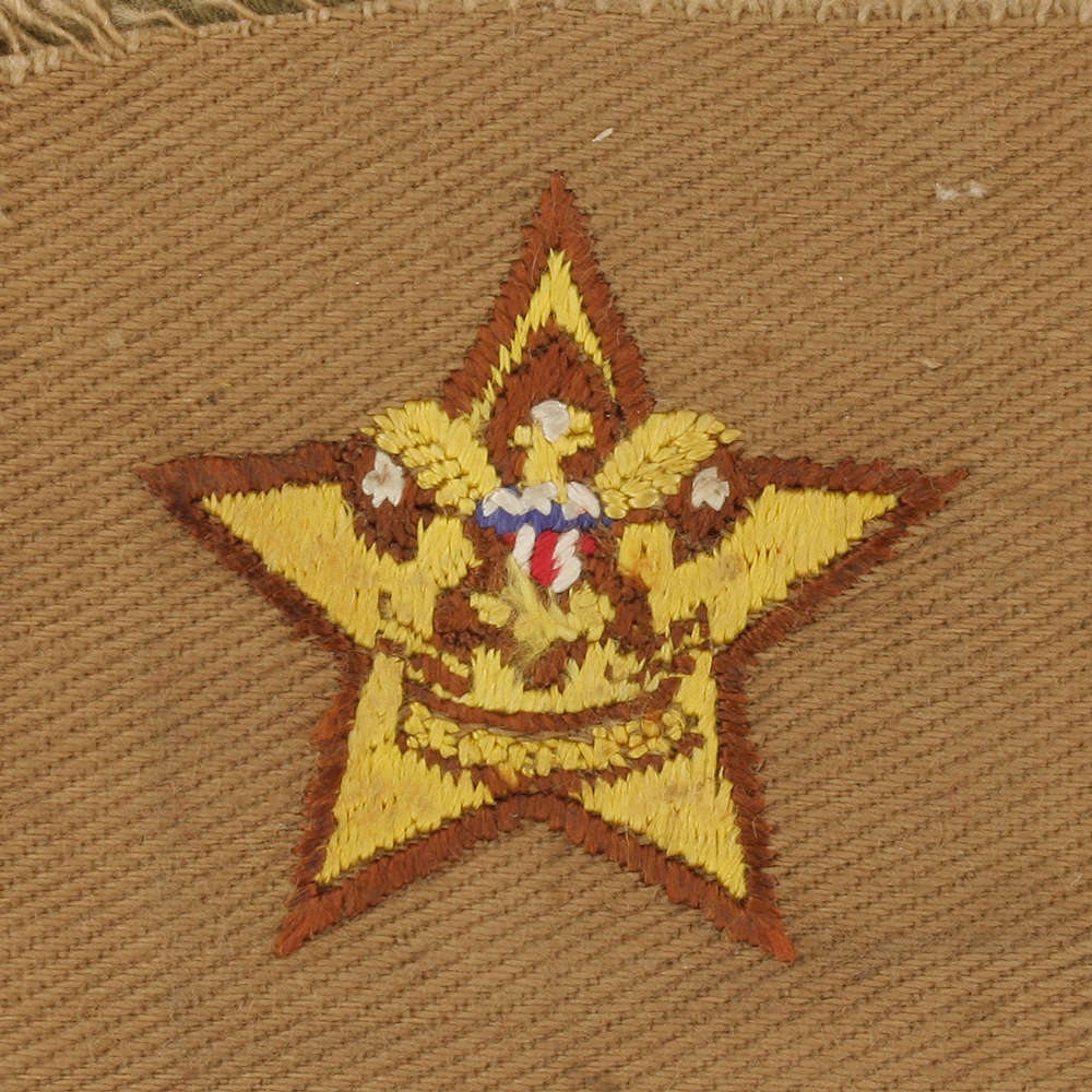 - Tan Lightweight Cloth with Cotton Lockstitch Embroidery and Plain Back 1939 - 42