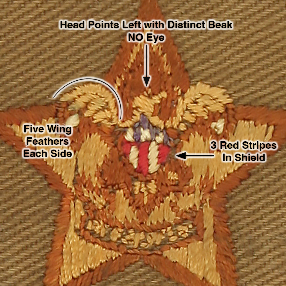 - Wings: Five feathers each side, top rib upside down "U" shaped
