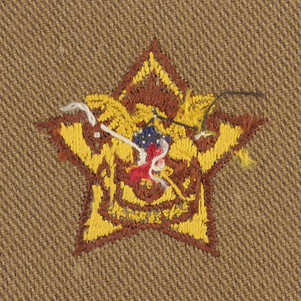 - Tan Lightweight Cloth with Cotton Lockstitch Embroidery and Plain Back 1939 - 42