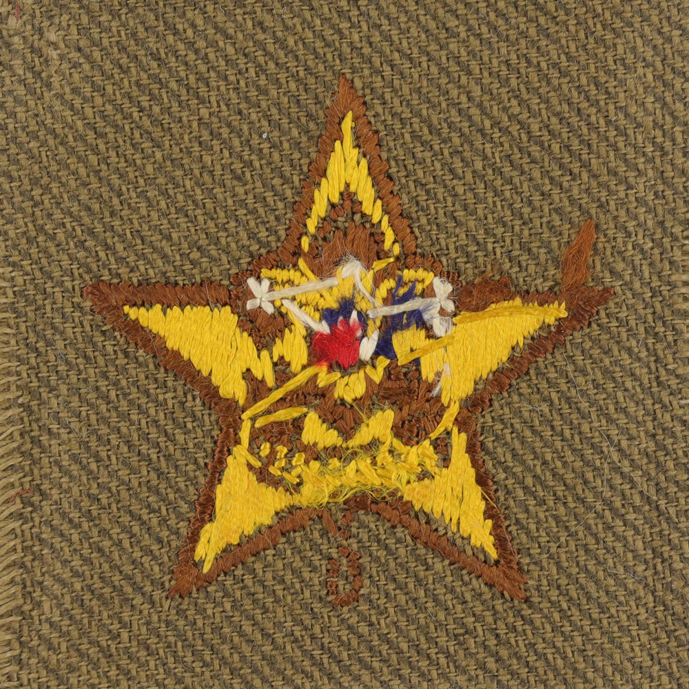 - Tan Lightweight Cloth with Cotton Lockstitch Embroidery and Plain Back 1939 - 42