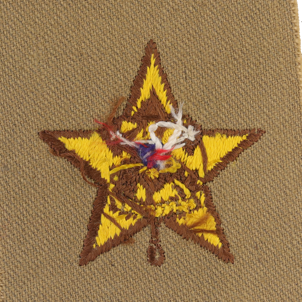 - Tan Lightweight Cloth with Cotton Lockstitch Embroidery and Plain Back 1939 - 42