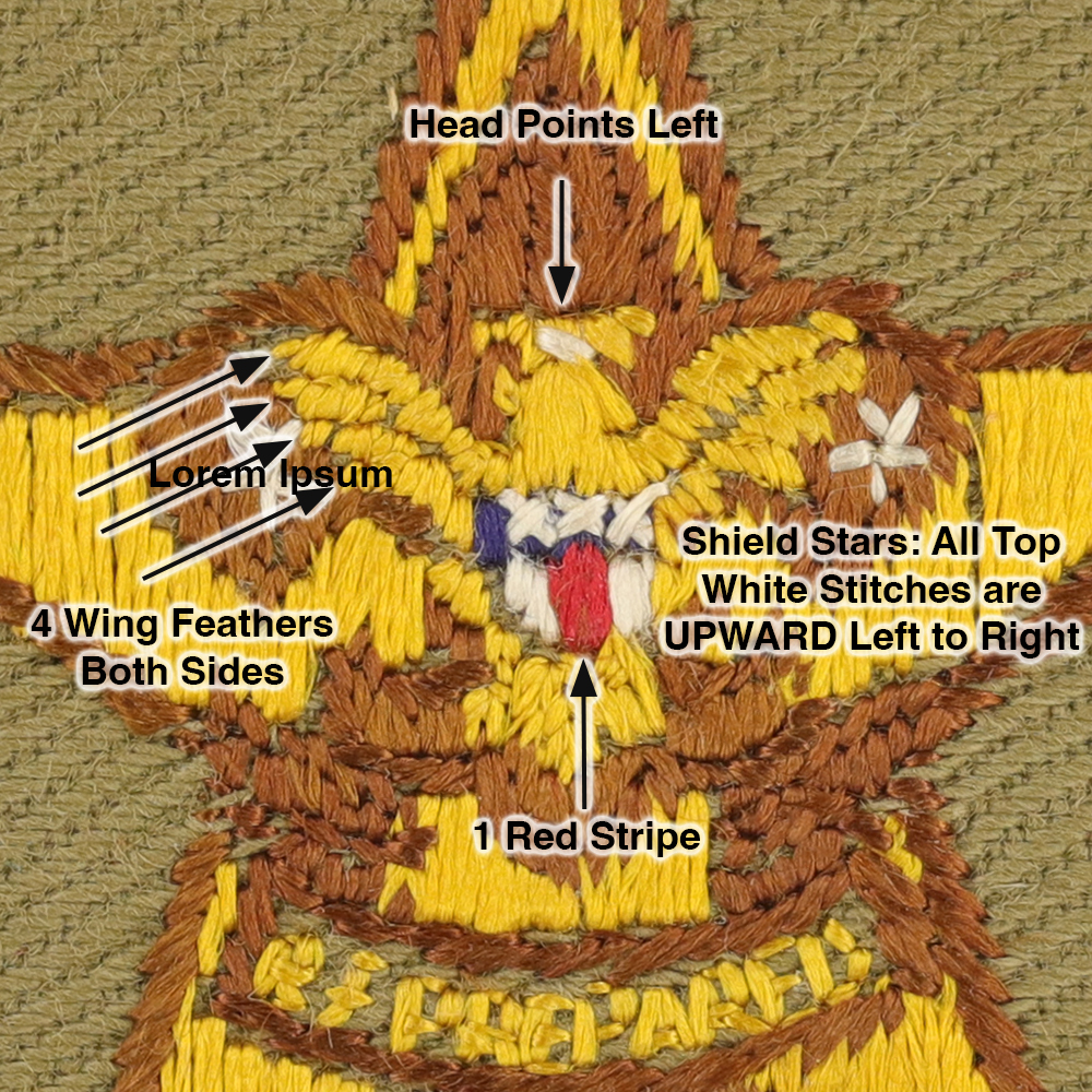 - Shield Stars: Top stitch of all stars ar UPWARD left to right