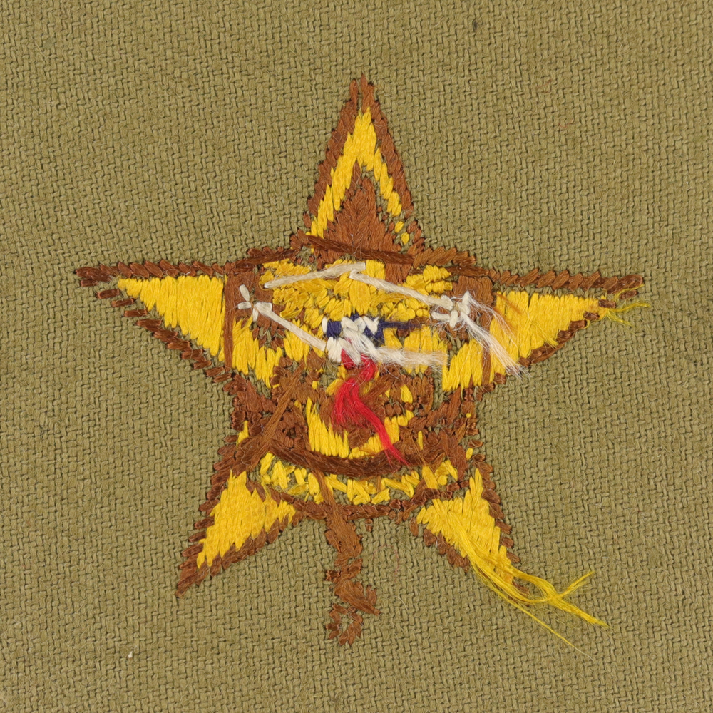 - Tan Lightweight Cloth with Cotton Lockstitch Embroidery and Plain Back 1939 - 42