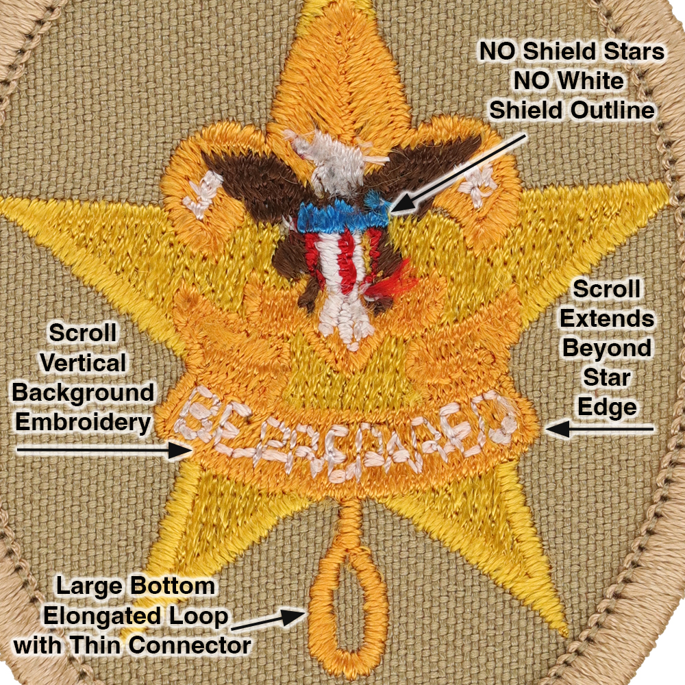 - Scroll: Vertical embroidery, scroll extends beyond star outline