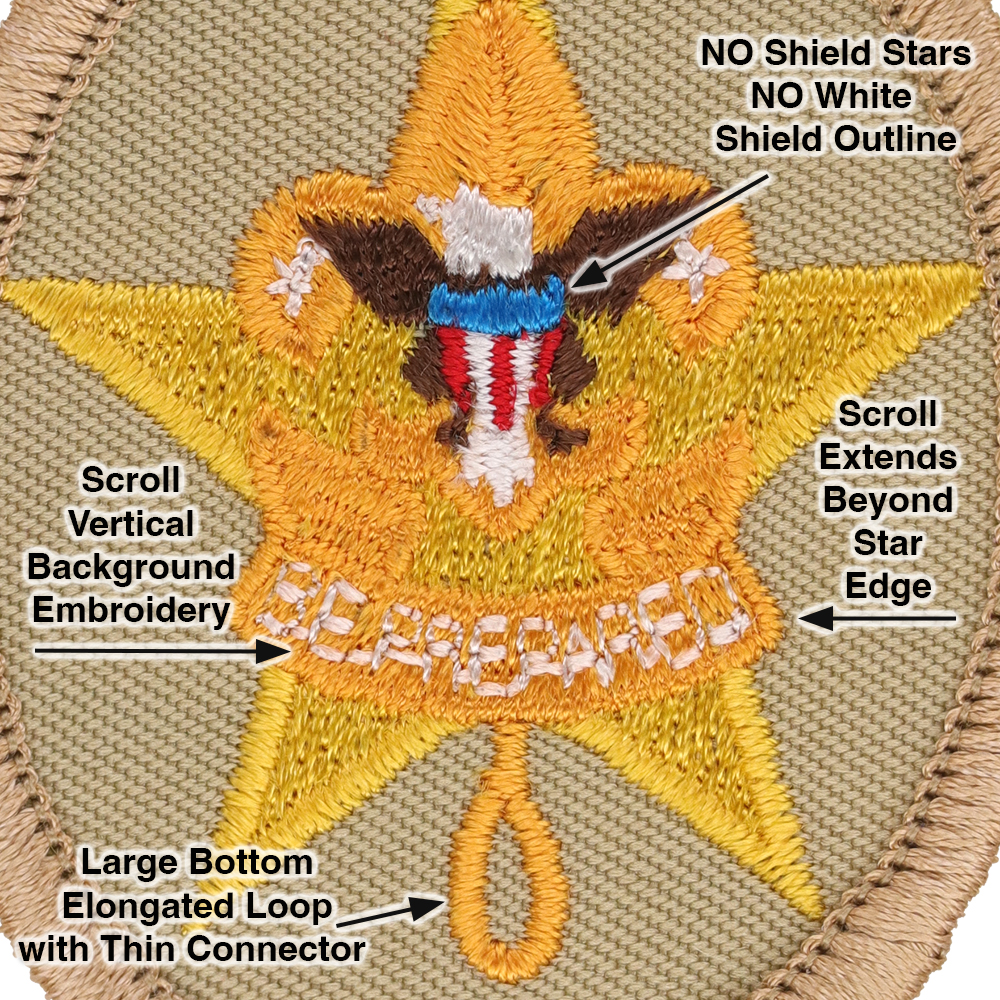 - Scroll: Vertical embroidery, scroll extends beyond star outline