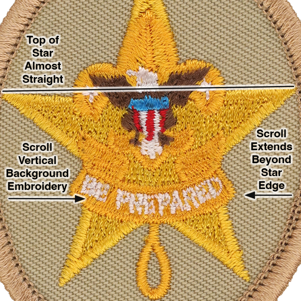 - Scroll: Vertical embroidery, scroll extends beyond star outline