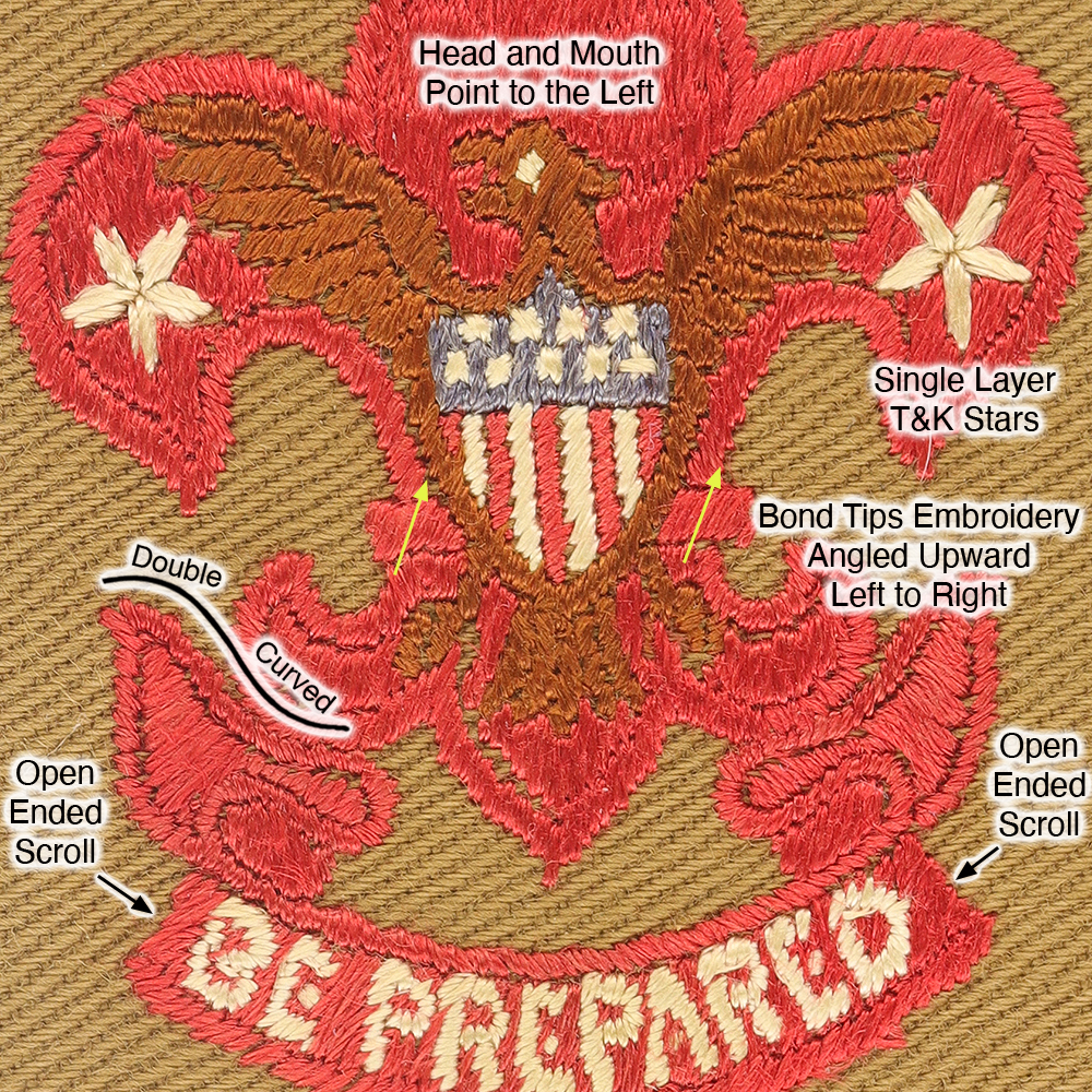 - Bond Tips: Both - embroidery angled upward left to right