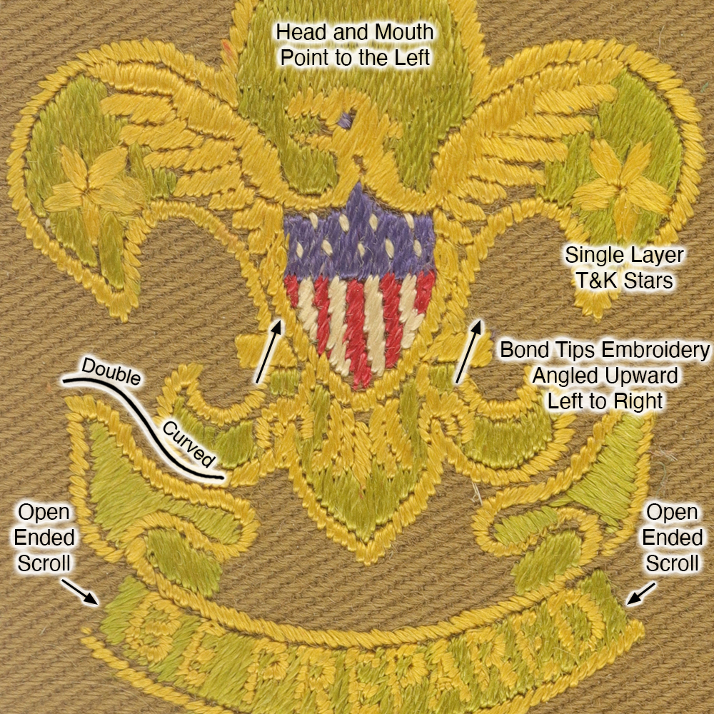 - Bond Tips: Both - embroidery angled upward left to right