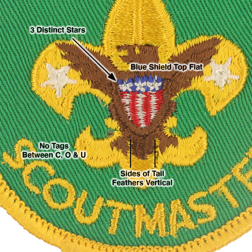 - Lettering: NO tags between C, O, & U of Scoutmaster
