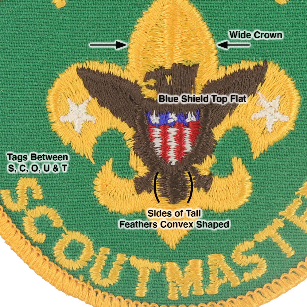 - Lettering: Tags between S, C, O, U & T of Scoutmaster