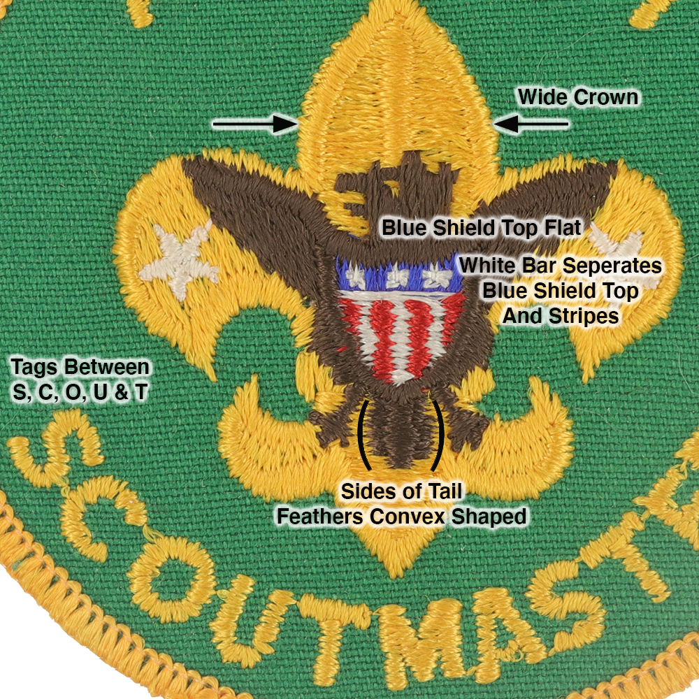 - Lettering: Tags between S, C, O, U & T of Scoutmaster