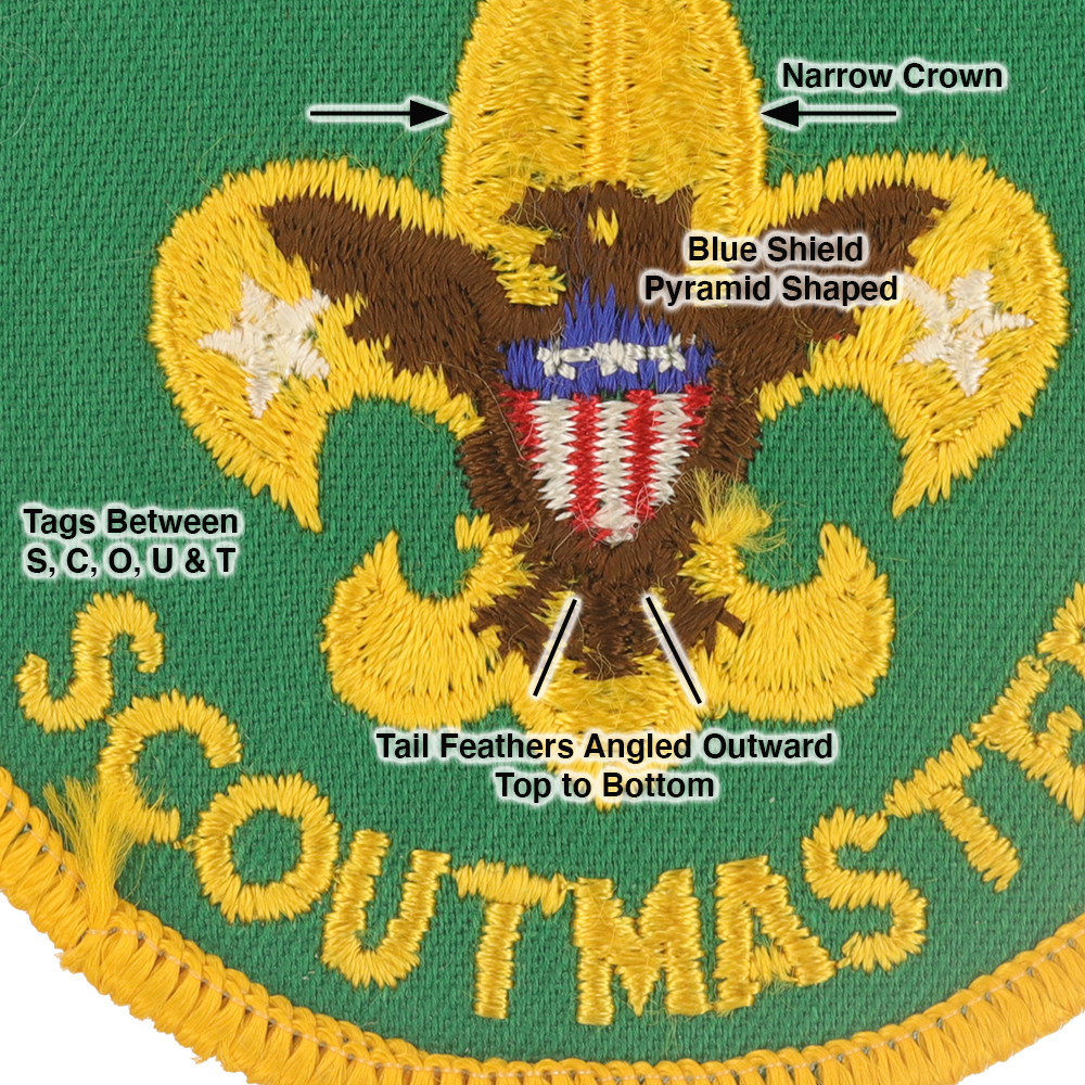 - Lettering: Tags between S, C, O, U & T of Scoutmaster