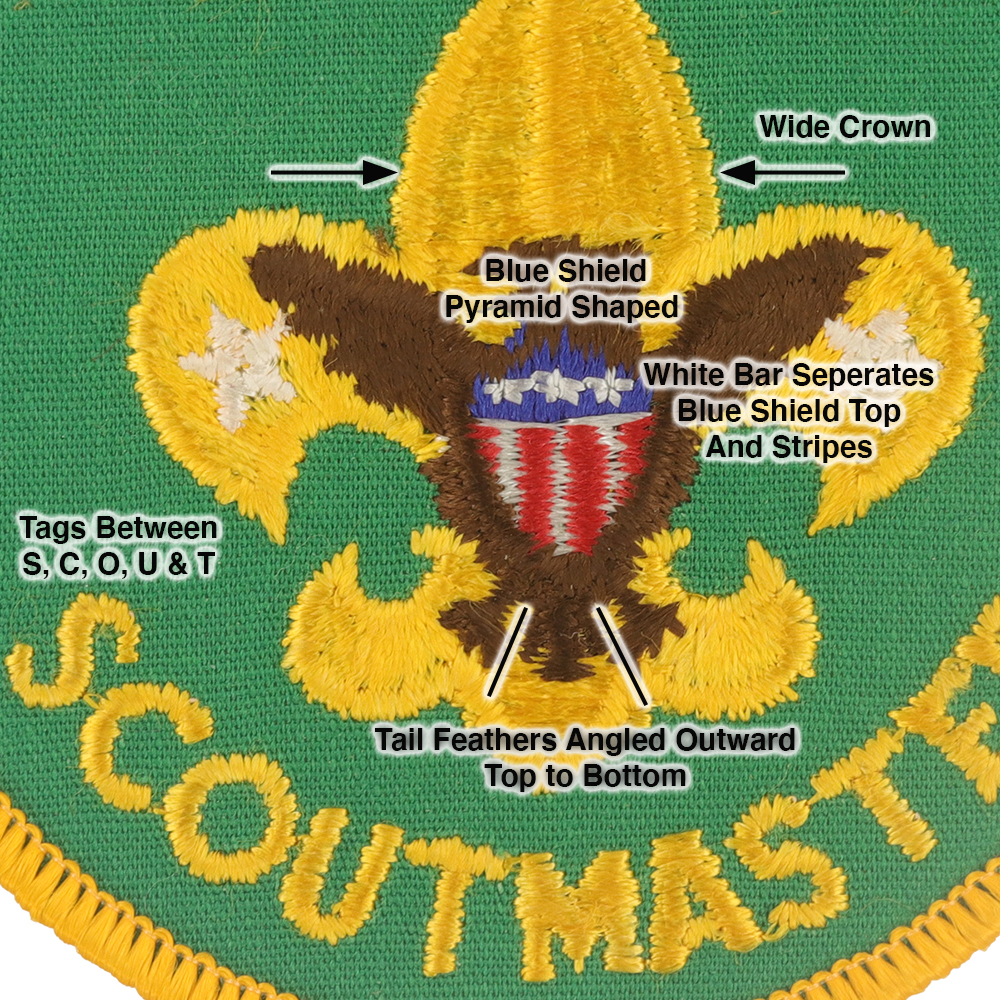 - Lettering: Tags between S, C, O, U & T of Scoutmaster