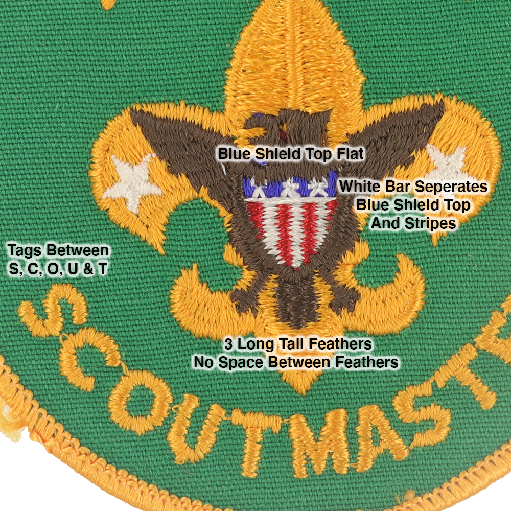 - Lettering: Tags between S, C, O, U & T of Scoutmaster