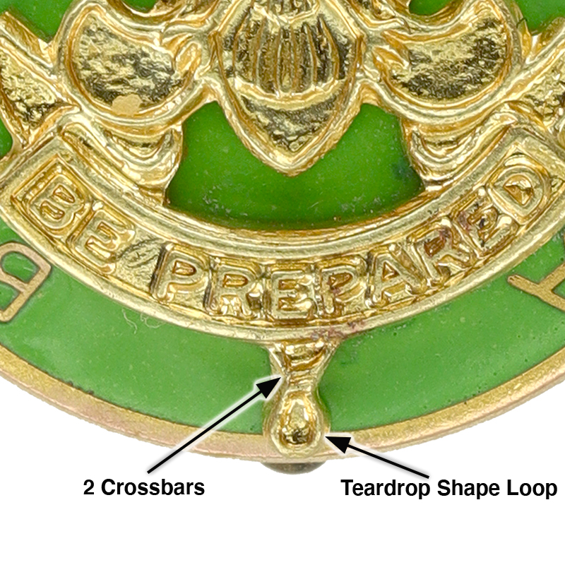 - Design: 3 dimensional first class, gold "BOY SCOUTS OF AMERICA"