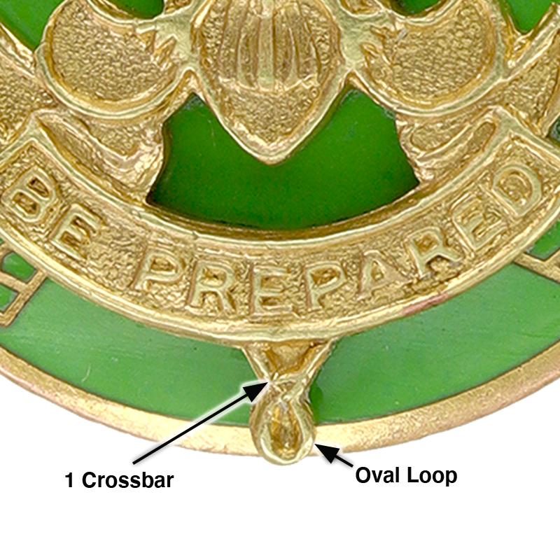 - Design: 3 dimensional first class, gold "BOY SCOUTS OF AMERICA"