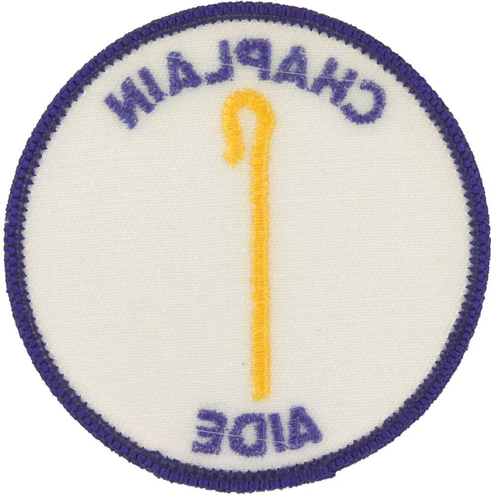 - Design: Gold shepherd's crook, blue border and lettering "CHAPLAIN AIDE"