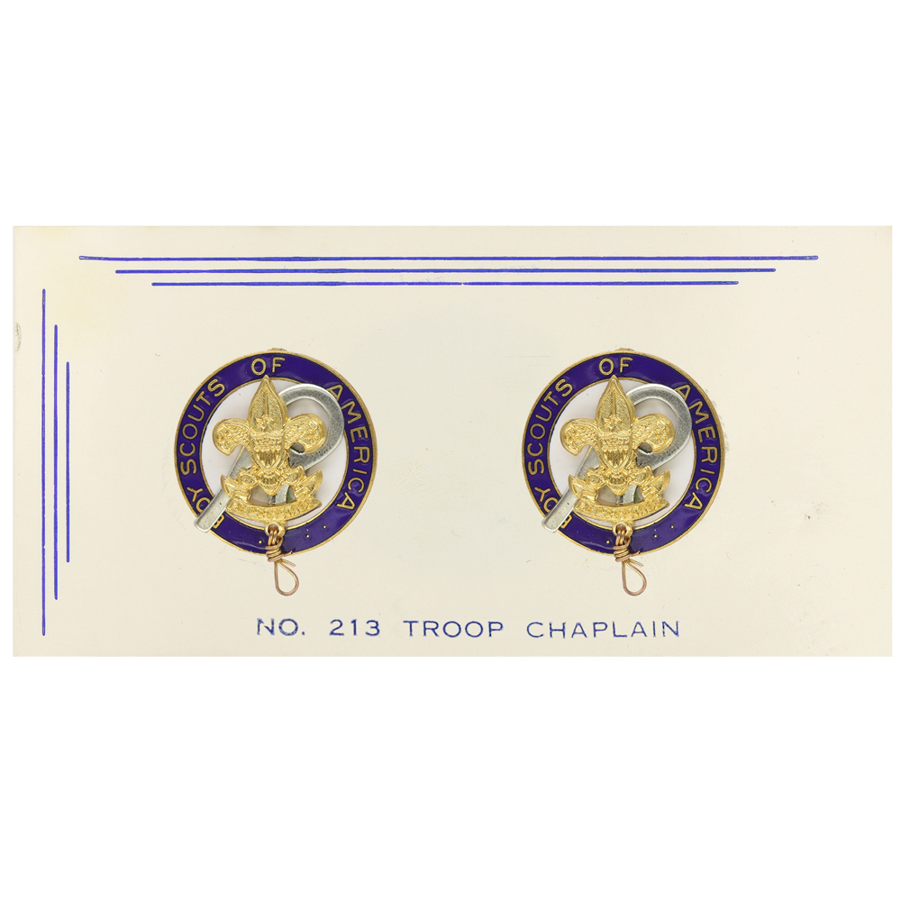- Design: 3 dimensional tall crown gold first class, gold "BOY SCOUTS OF AMERICA", silver shepherd's crook