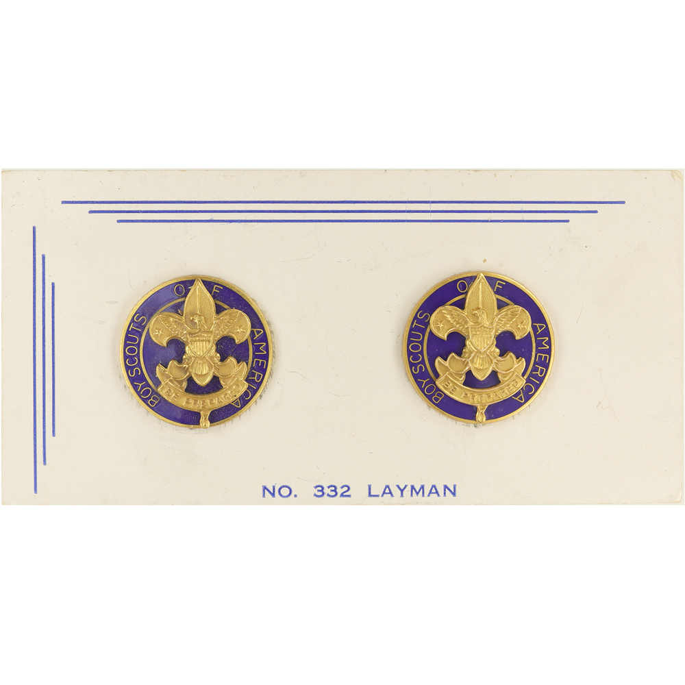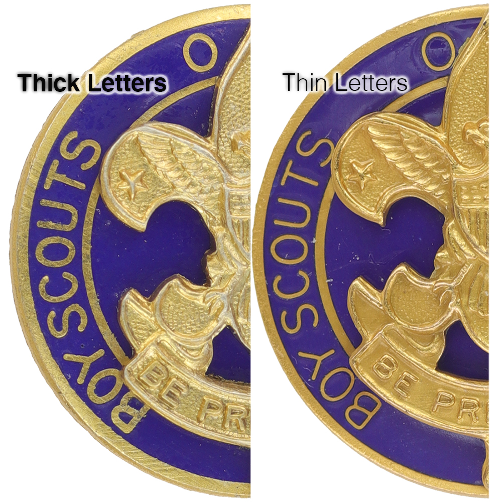 - Design: 3 dimensional tall crown first class, gold "BOY SCOUTS OF AMERICA"