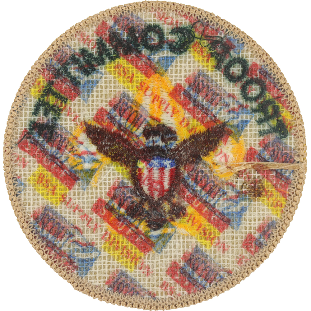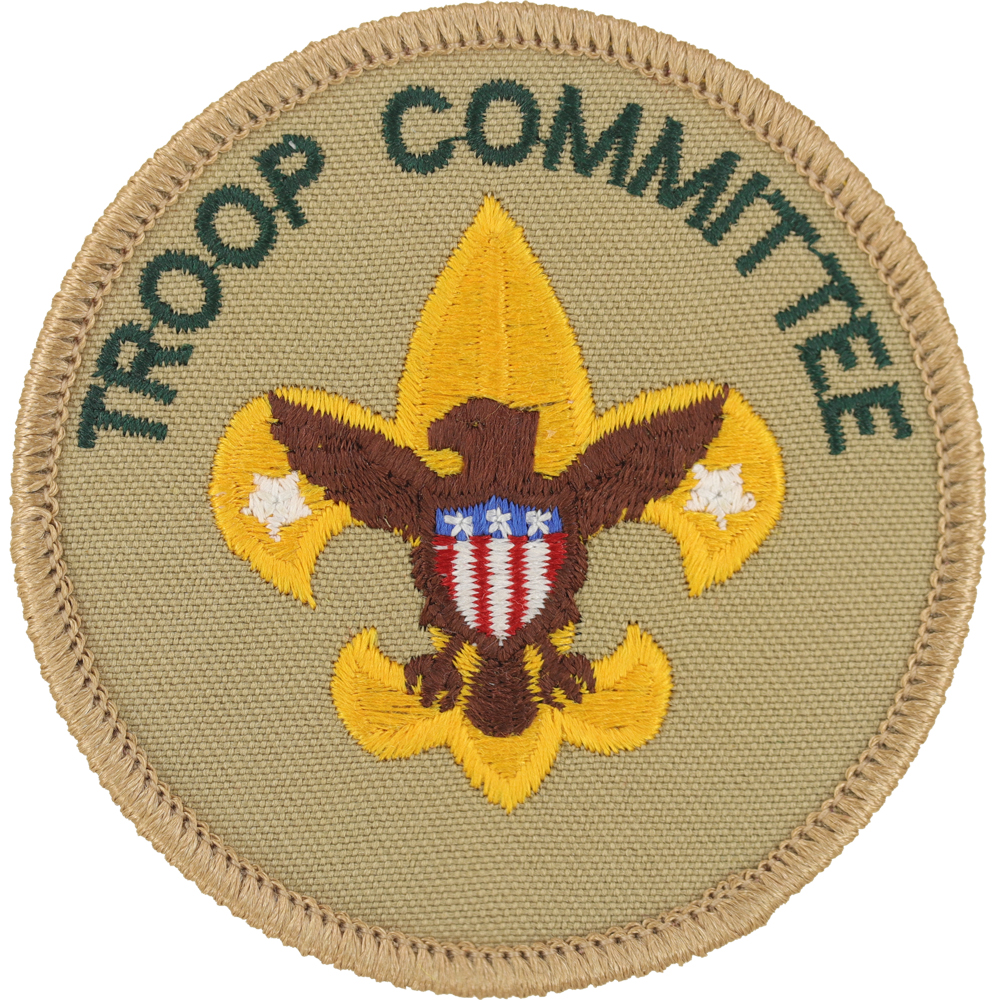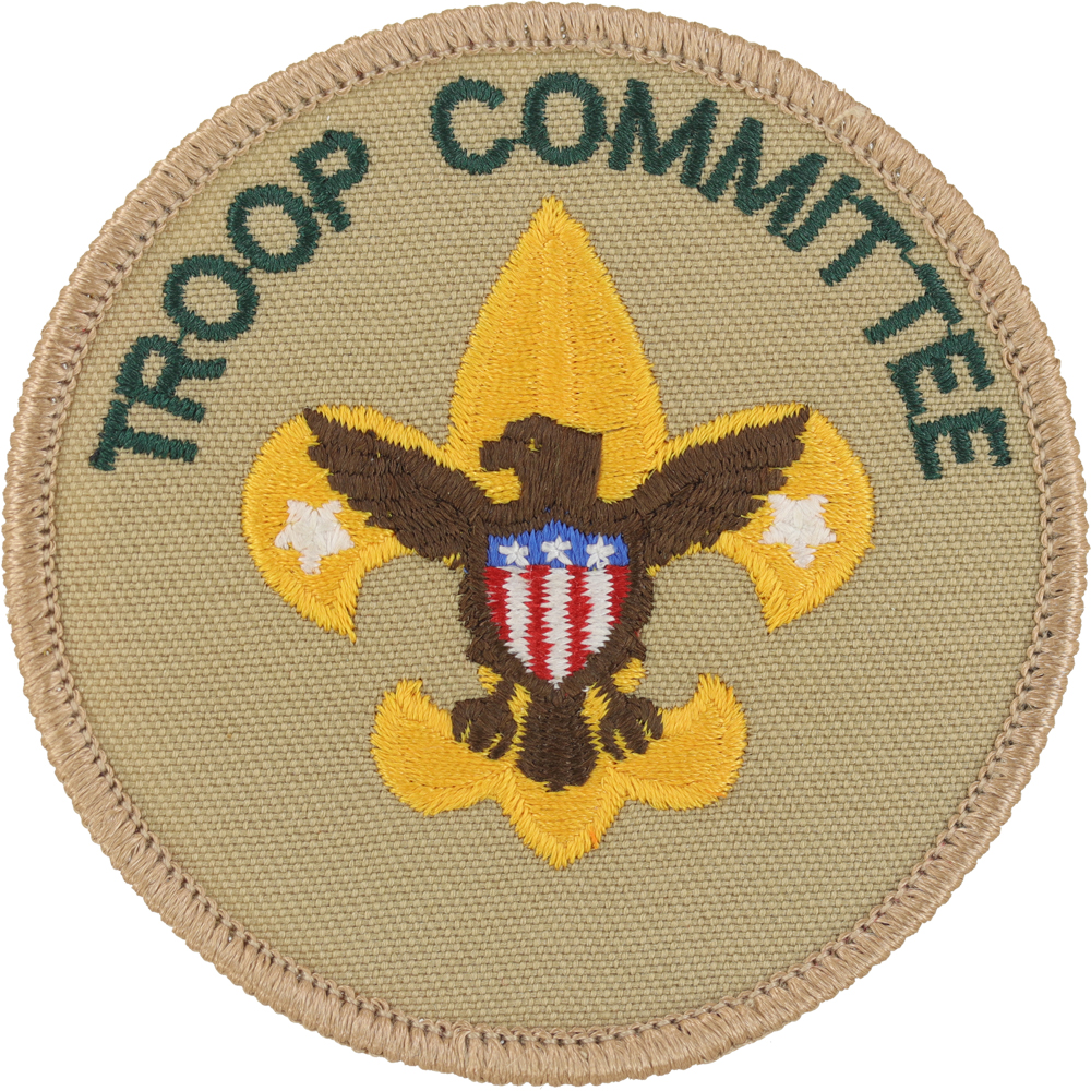 - Design: Gold tenderfoot emblem with brown eagle, tan border and green lettering "TROOP CO mmITTEE"