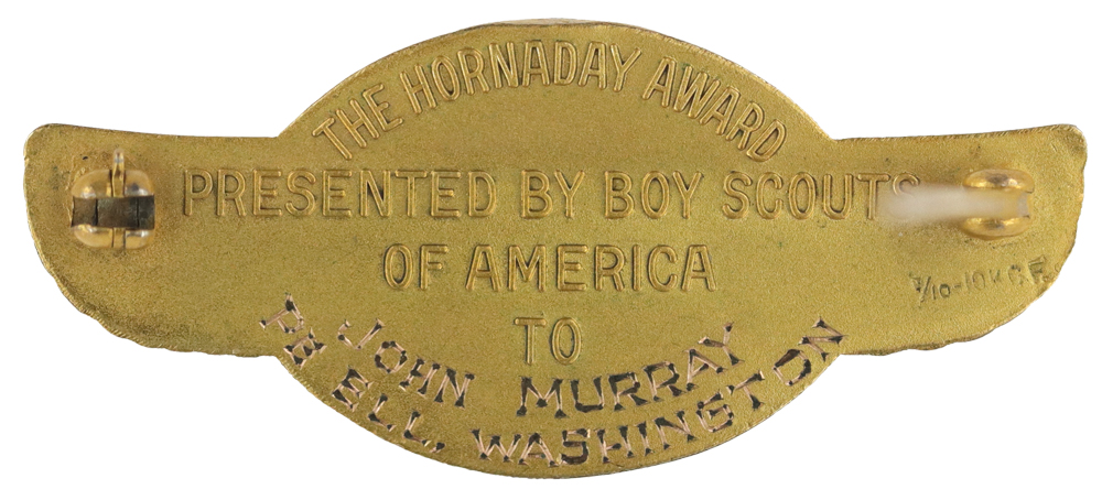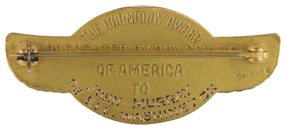 - Hallmark: Raised "THE HORNADAY AWARD PRESENTED BY BOY SCOUTS OF AMERICA TO"