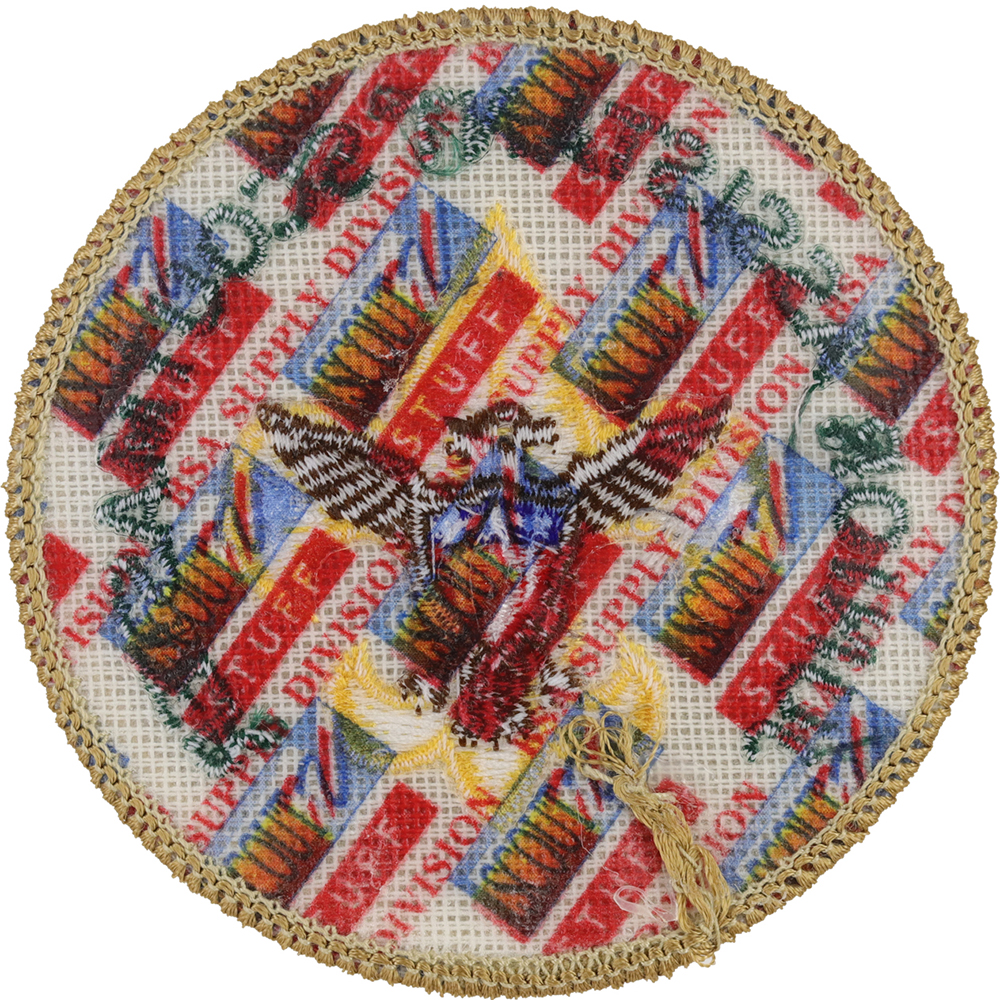 - Fine left twill, 50mm Gold Tenderfoot with brown eagle, stars in shield star shape, 5 tail feathers