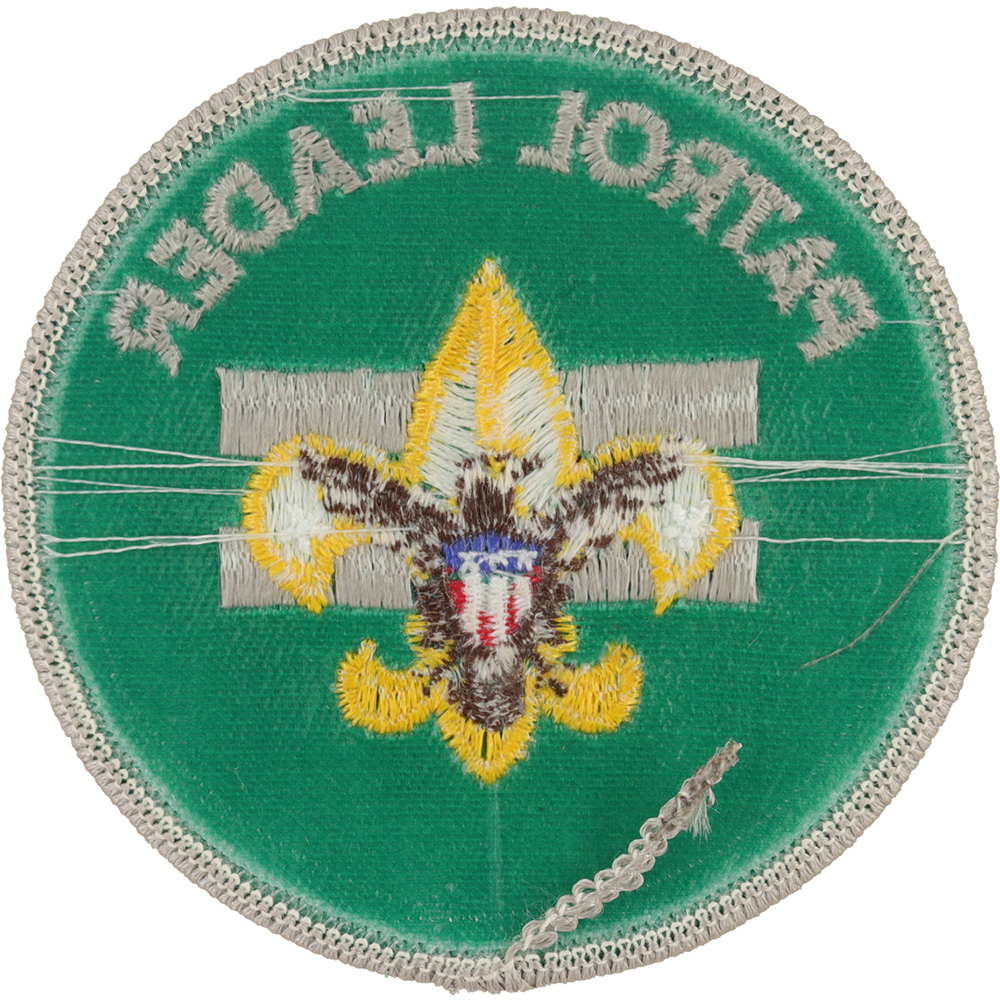 - 40mm Gold Tenderfoot with brown eagle, 3 distinct stars, 5 tail feathers slightly narrower at top than bottom, "O" in patrol is flat on one side, top of the letter "E" turns up, white line below shield stars, vertical stitching in base of FDL