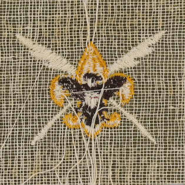 - Tan Lightweight Cloth with Cotton Lockstitch Embroidery and Plain Back 1939 - 42