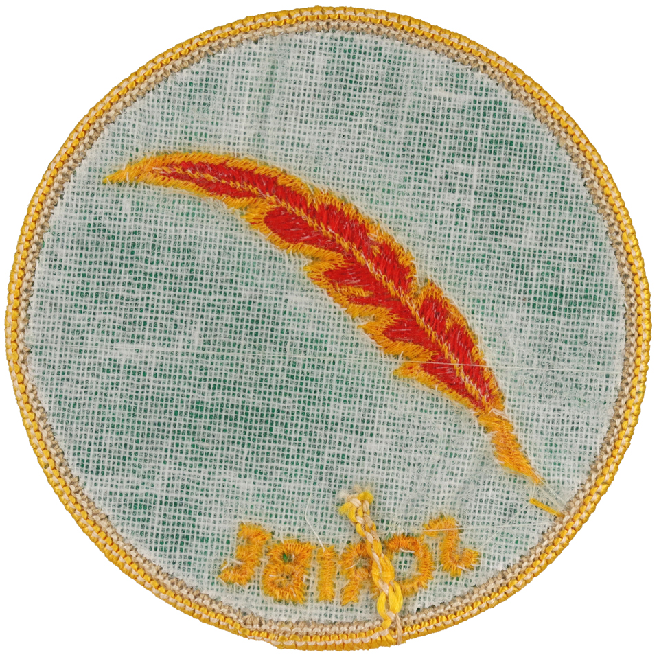 - Emblem Design: Triangle shaped quill tip with straight bottom, vertical stitching in center of quill