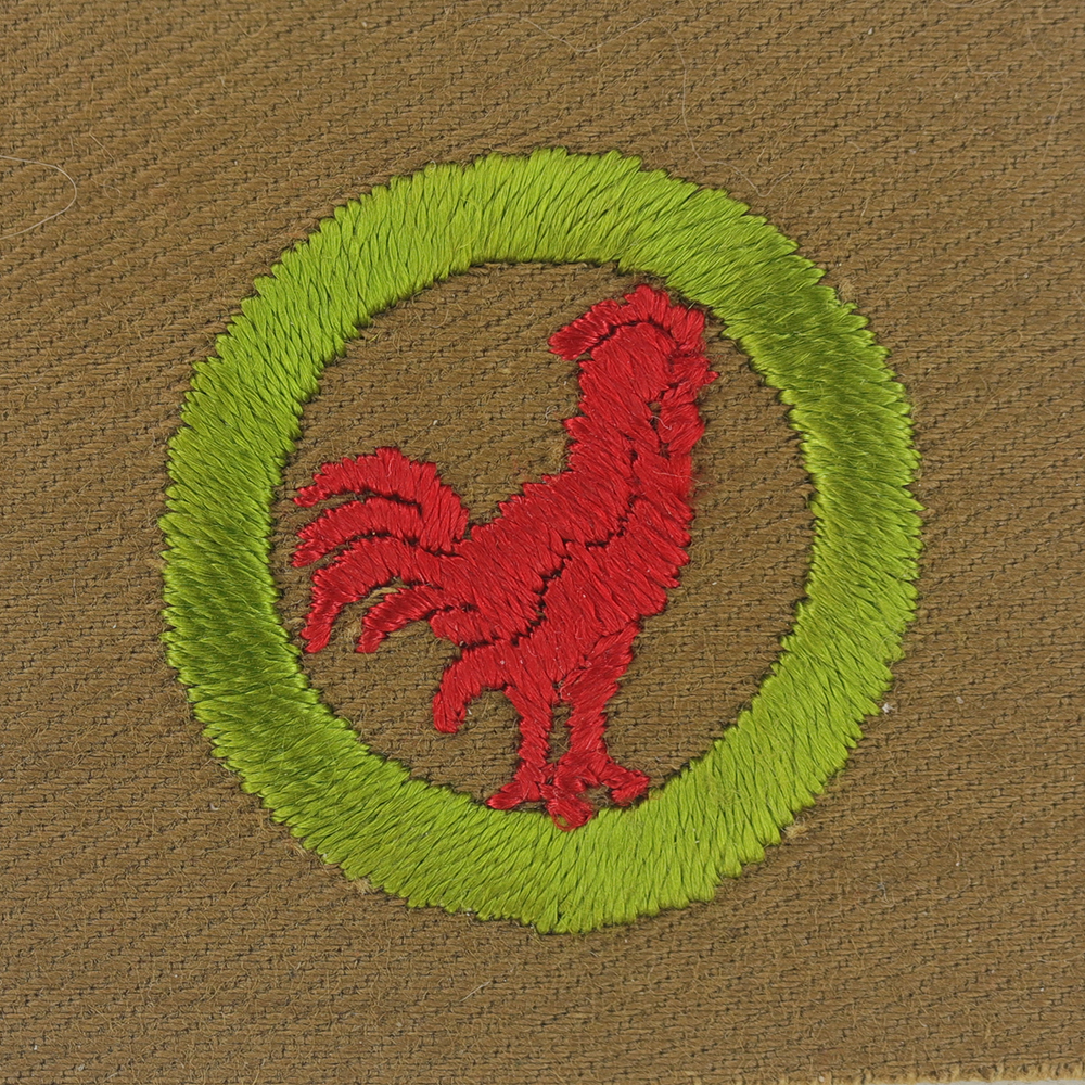 - Design: No eye, comb is a bar, solid curved beak, long wattle, 1st tail feather ends at back of body, 3rd tail feather does NOT extend below body, short legs