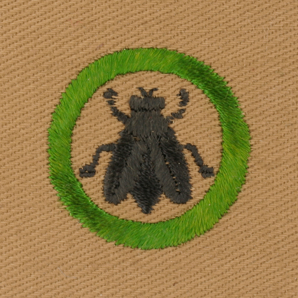 - Design: Large thorax, center groove in each wing, two 80 degree bends in legs, pointed bottom to wings, wide stitches at end of front legs