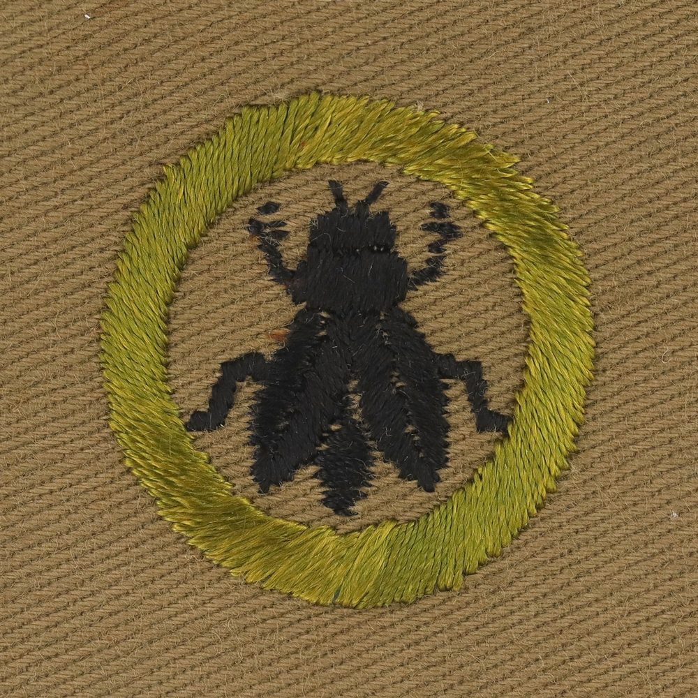 - Tan Lightweight Cloth with Cotton Lockstitch Embroidery and Plain Back 1939 - 42
