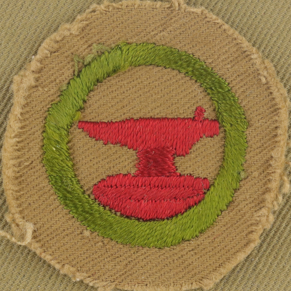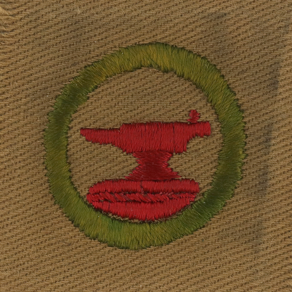 - Design: Right end of anvil body is square, base of anvil appears to have lips, center of mouth embroidery slanted left, closed mouth, horn is chiseled shape and rounded