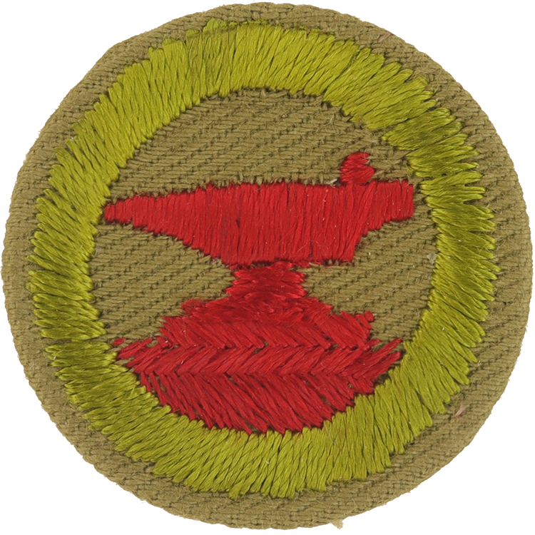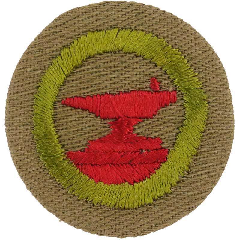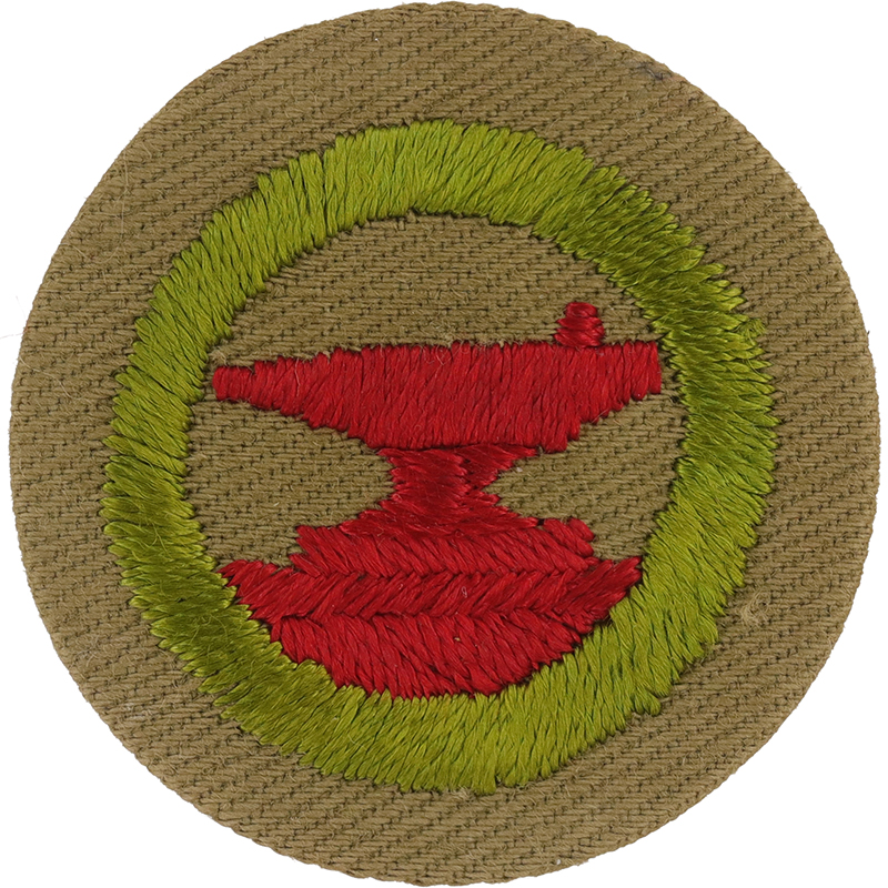 - Design: 3 layer base of anvil, top and lower layer of base embroidery angled to left, center angled to right, long pointed horn