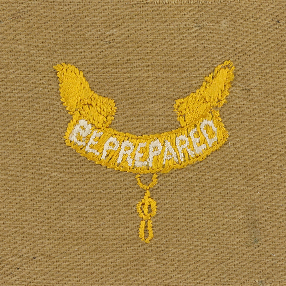 - Tan Lightweight Cloth with Cotton Lockstitch Embroidery and Plain Back 1939 - 42