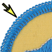 Merrowed Edge: Threads wrapped around the fabric edge yielding a uniform border. The term merrowed comes from the inventor of the bordering machine, Joseph Makens Merrow. The type of merrowed edge depends on the typo/model of the machine used by the embroider. There are three types used on patrol medallion.