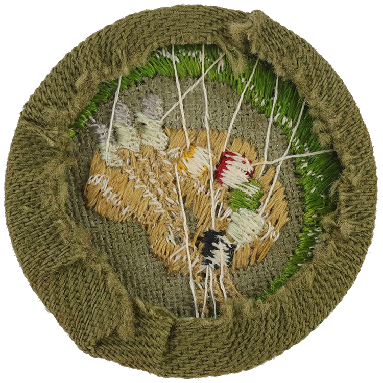 - Tan Lightweight Cloth with Cotton Lockstitch Embroidery and Plain Back 1939 - 42